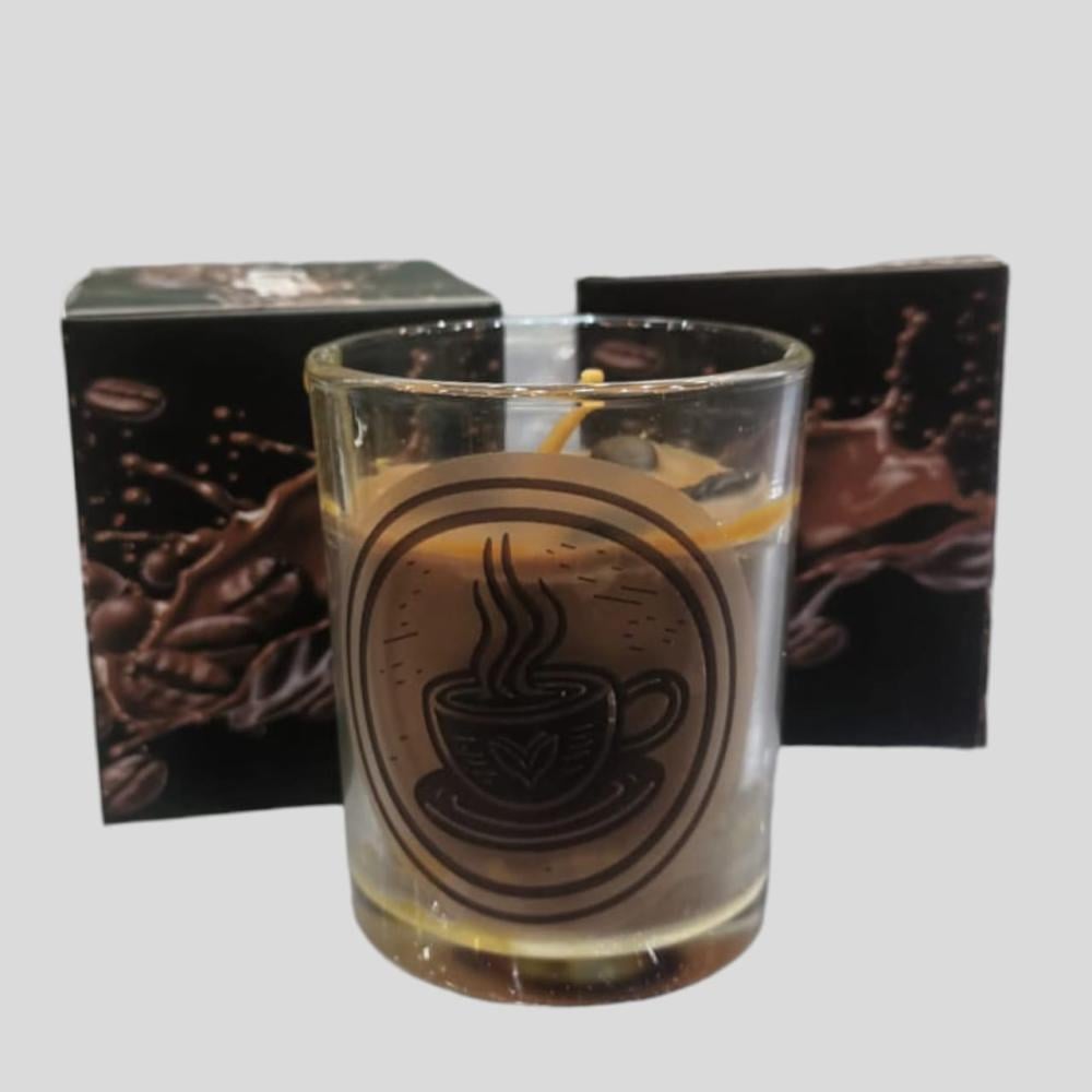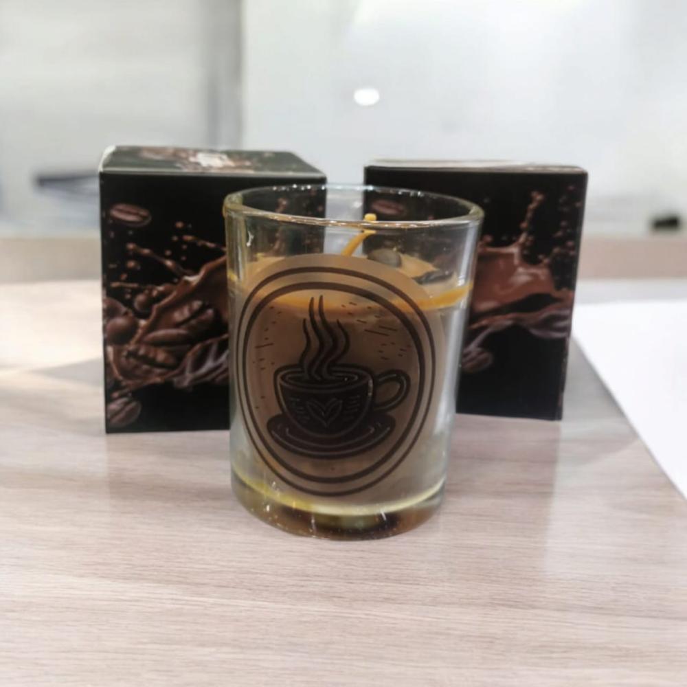 بتقديم توزيعات من الشموع المعطرة الزجاجية بتصميم انيق برائحة القهوة , فـتوزيعات الشموع مناسبه في