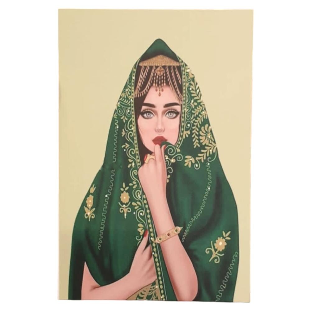 تتكون من كرت ورقي متين بثيم العروسه لليلة الحناء بتصميم جميل والوان زاهيه ويمكن تنسيقها