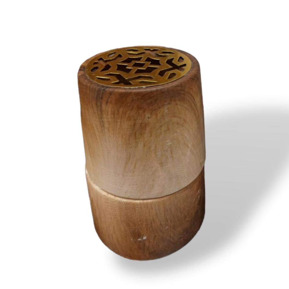 مجموعة (12) من مباخر حشبية بتصميم مميز مع حامل فحم ذهبي انيق