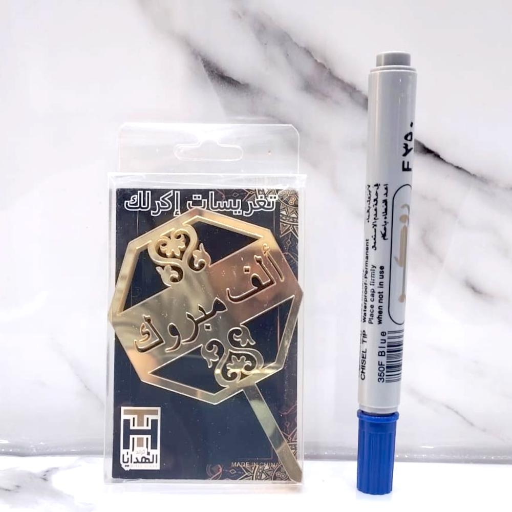 اذا كنت تبحث عن تغريسة مميزة للترحيب بضيوفك في مناسبتك فهذه التغريسات الاكريليك المصممة بتصميم انيق بعبارة الف مبروك تعتبر الخيار الامثل للاستخدام في الترحيب بضيوفك , التغريسات يمكن طلبها فردية او مجموعة مكونة من 12 قطعة .