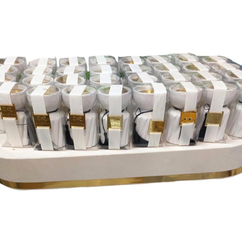 توزيعات مباخر فاخرة (24 قطعة) منسقة بالشرائط مع الصحن