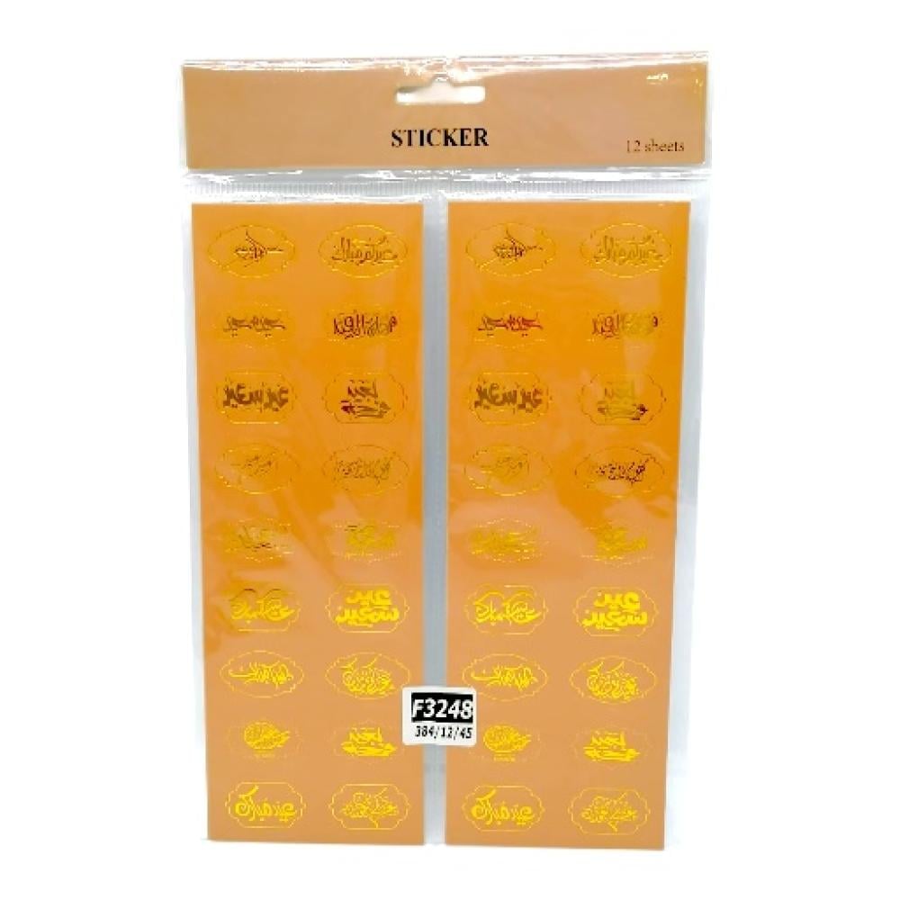 مجموعة من (12) شيت من استيكرات لتنسيق توزيعات عيد الفطر بعبارات متنوعة