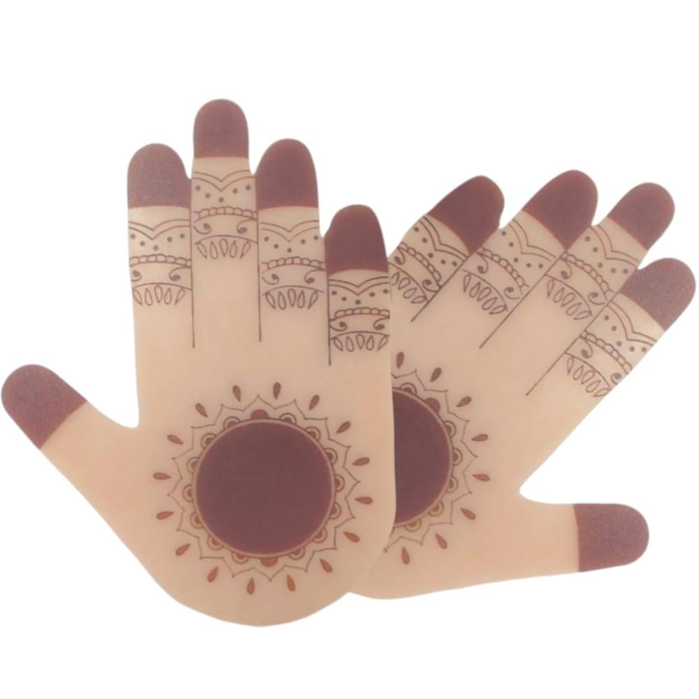 تتكون من استاند اكريليك ميني بشكل كف اليد بنقوشات الحناء تقدم هذه التوزيعات