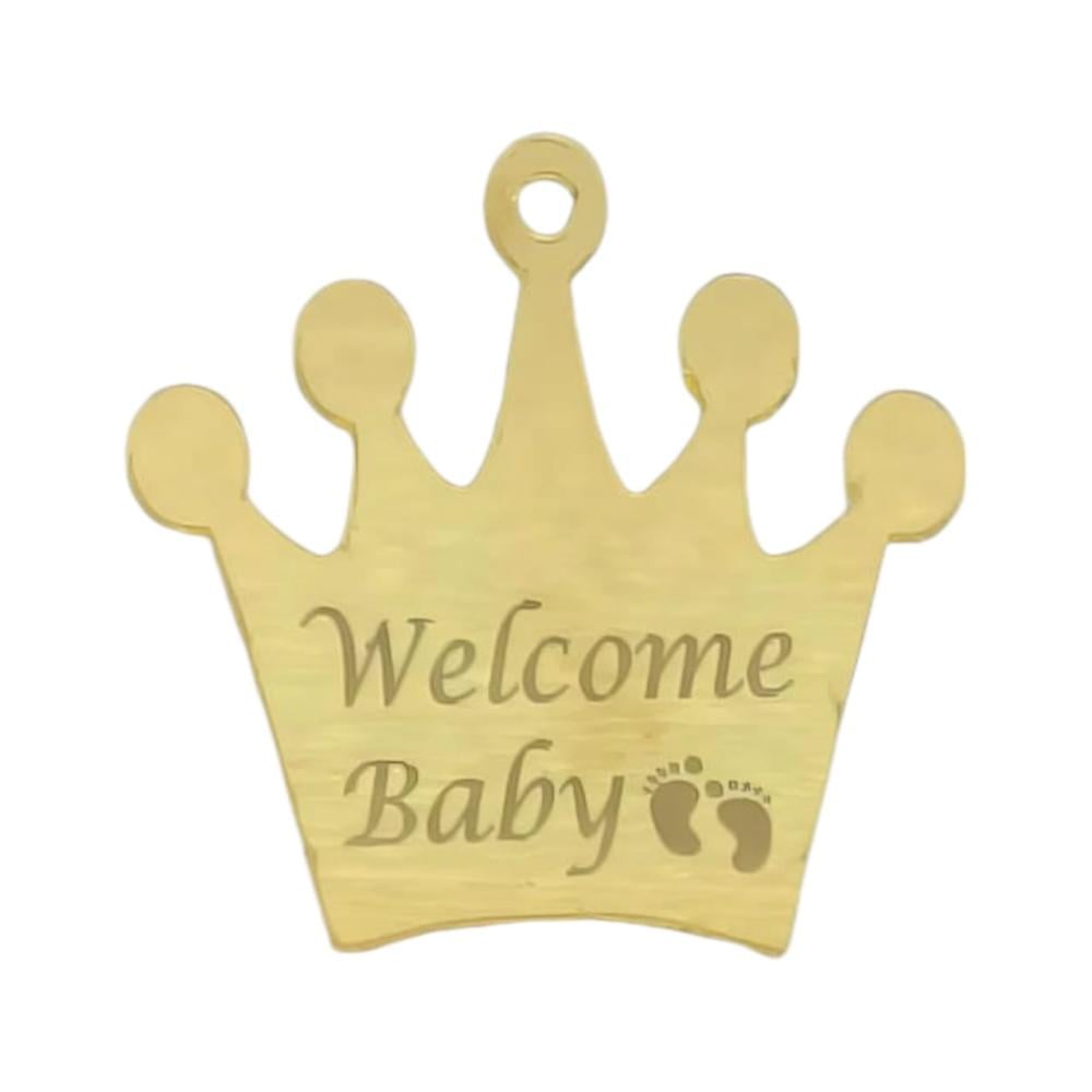 انيق بلون ذهبي وعبارة ( Welcome Baby ) واجعلي توزيعات لها لمسه ساحره
