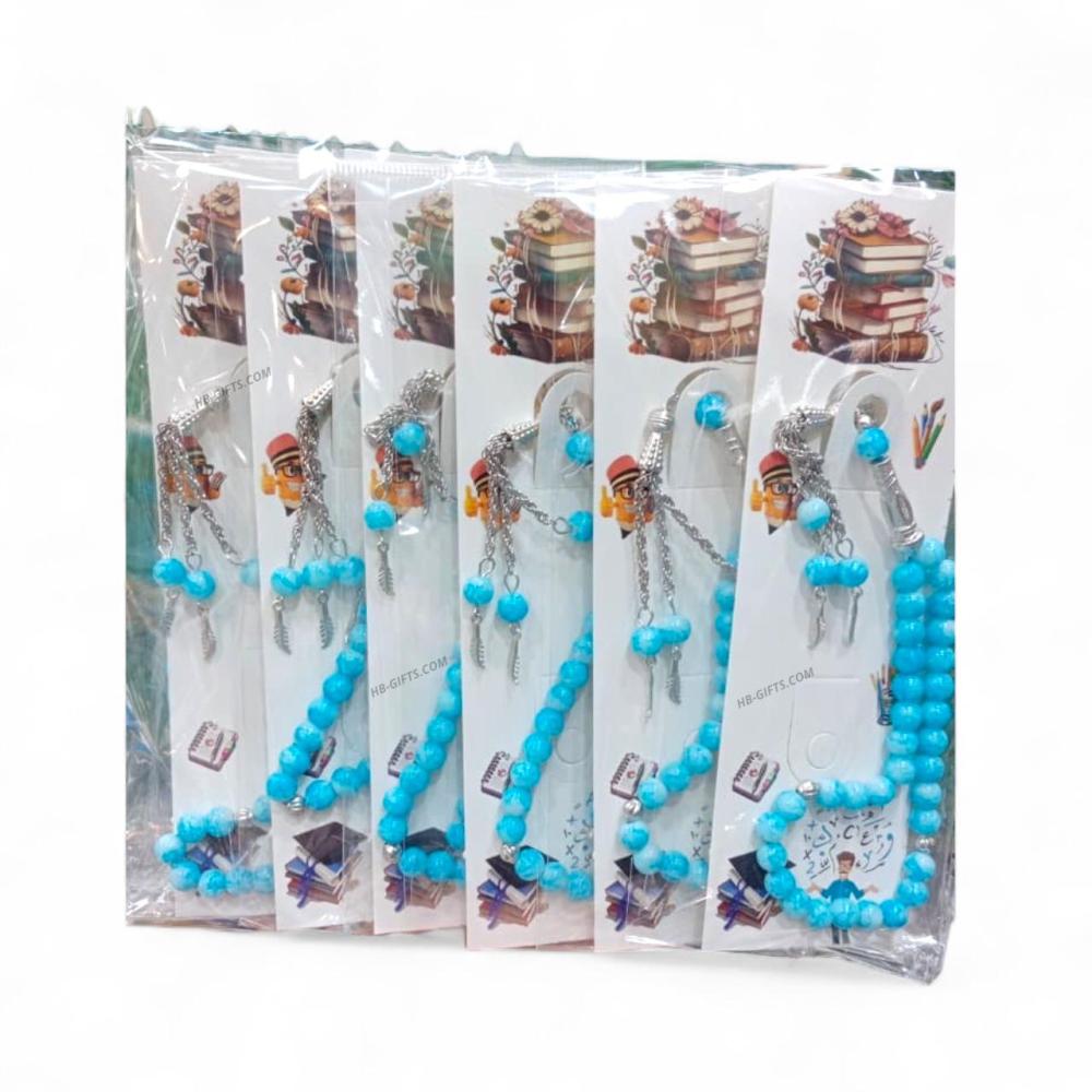 مجموعة (12) من توزيعات سبح باللون الازرق منسقة مع كروت لاحتفالات يوم المعلم