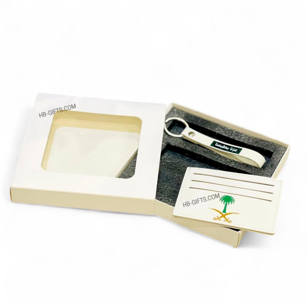 مجموعه (12) من توزيعات هدايا فاخرة - مداليه وحافظه كروت جلديه انيقه مصممة وعليها شعار المملكه - اليوم الوطني السعودي 95