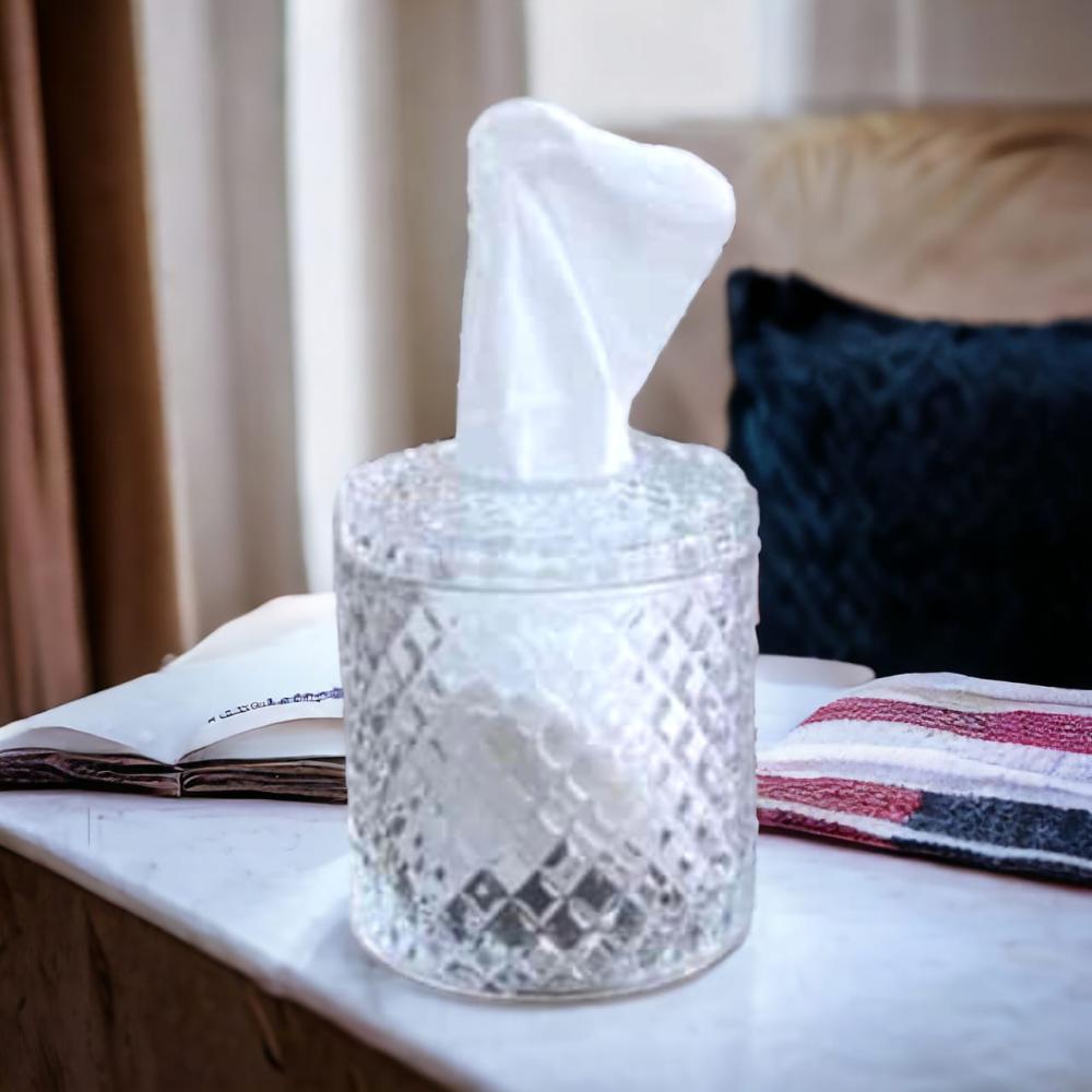بعلب المناديل الميني الزجاجية تأتي بتصميم كريستال اسطواني الشكل وشفاف