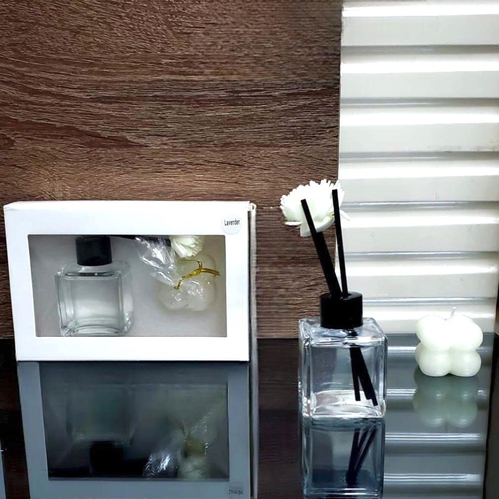 مجموعة مميزة من الفواحات العطرية مع الاعواد والتي تأتي برائحة اللافندر المميزة لتعطر المكان بعطر فواح يدوم طويلا ,ياتي مع الفواحة شمعة بابلز باللون الابيض , قم باضافة لمسة مميزة من الاناقة والتميز لمنزلك او مكتبك من خلال هذه الفواحة العطرية المميزة والتي تساعدك على الحصول على جو هادي منعش , الفواحة تحتوي على زيت عطري عالي الجودة رائحتة تدوم طويلا .