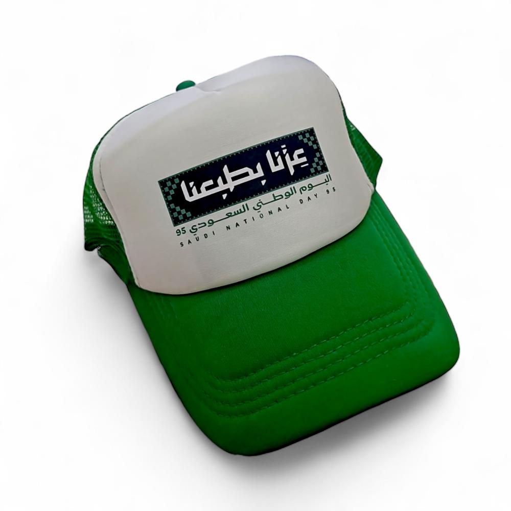 مجموعة (12) من كابات اليوم الوطني مصممة باللونين الابيض والاخضر بثيم -عزنا بطبعنا