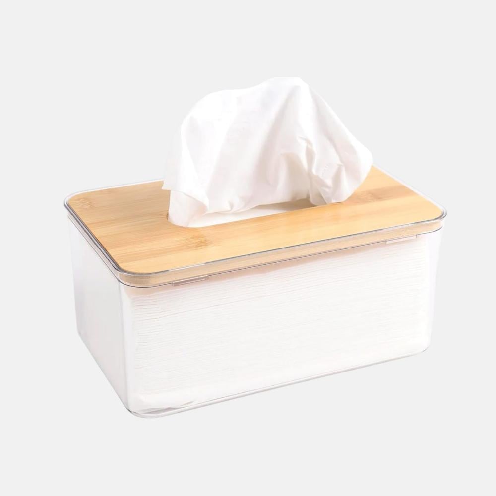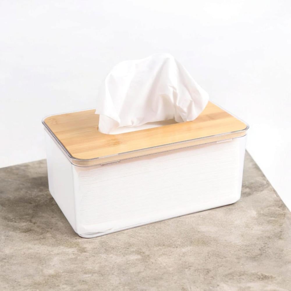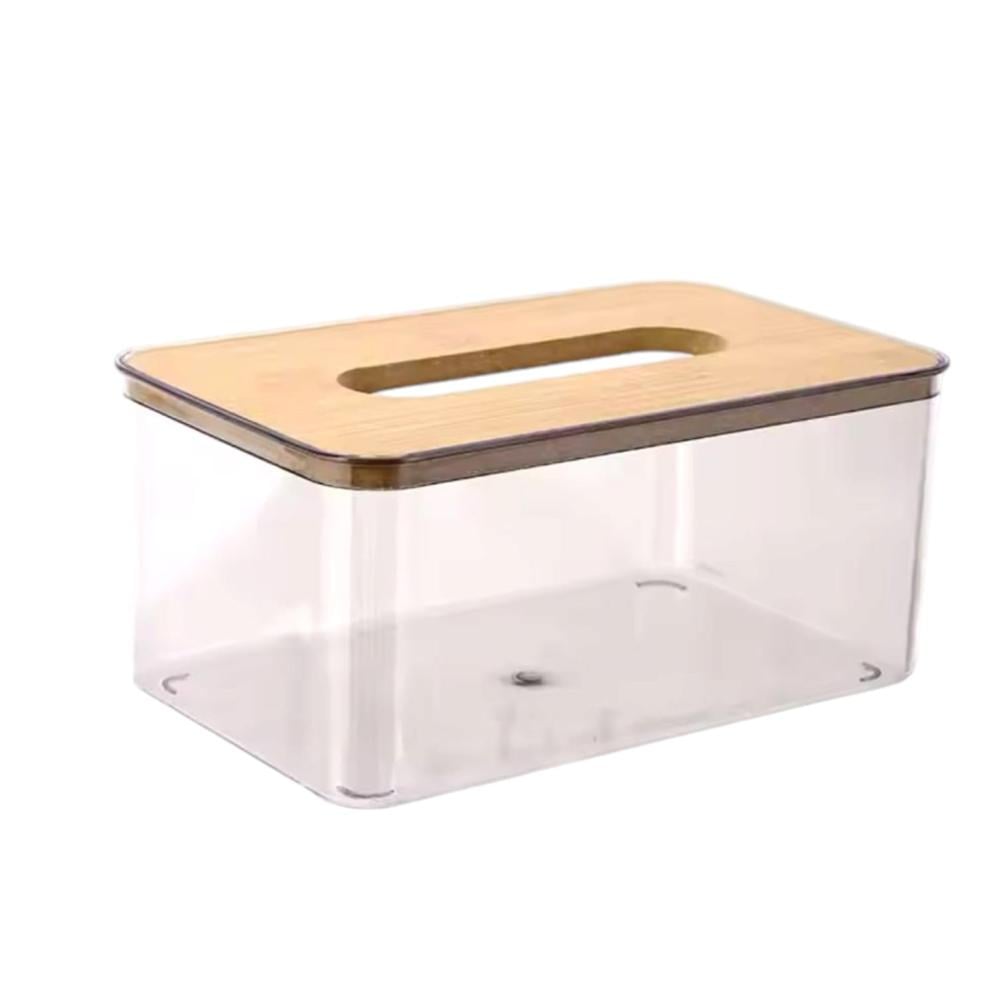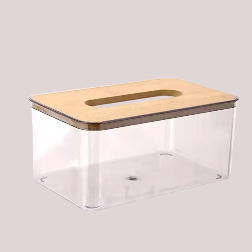 علب مناديل شفافة بشكل مستطيل من الاكريليك وغطاء خشبي أنيق .