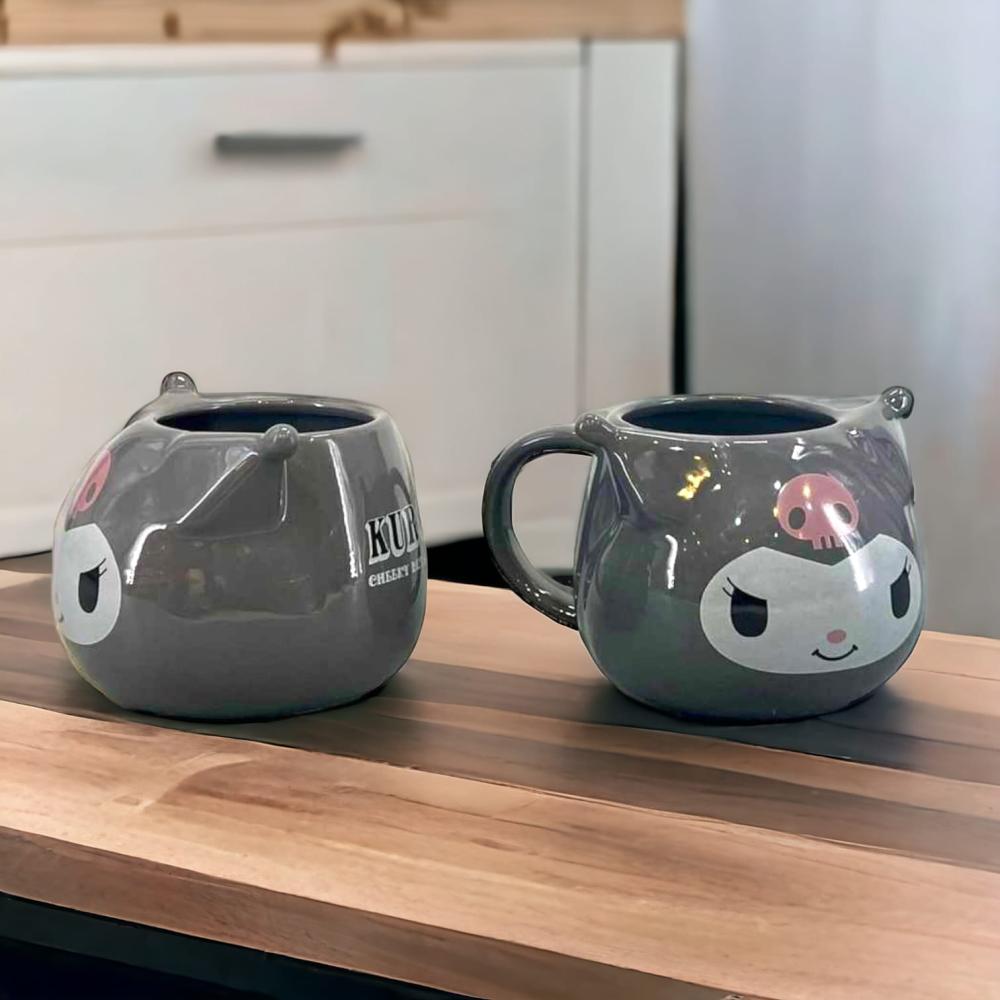 لهم اكواب سيراميك ذو متانه عاليه بلون رمادي مبهج على شكل شخصيه كرتونيه بمسكه متينه من الجنب ,