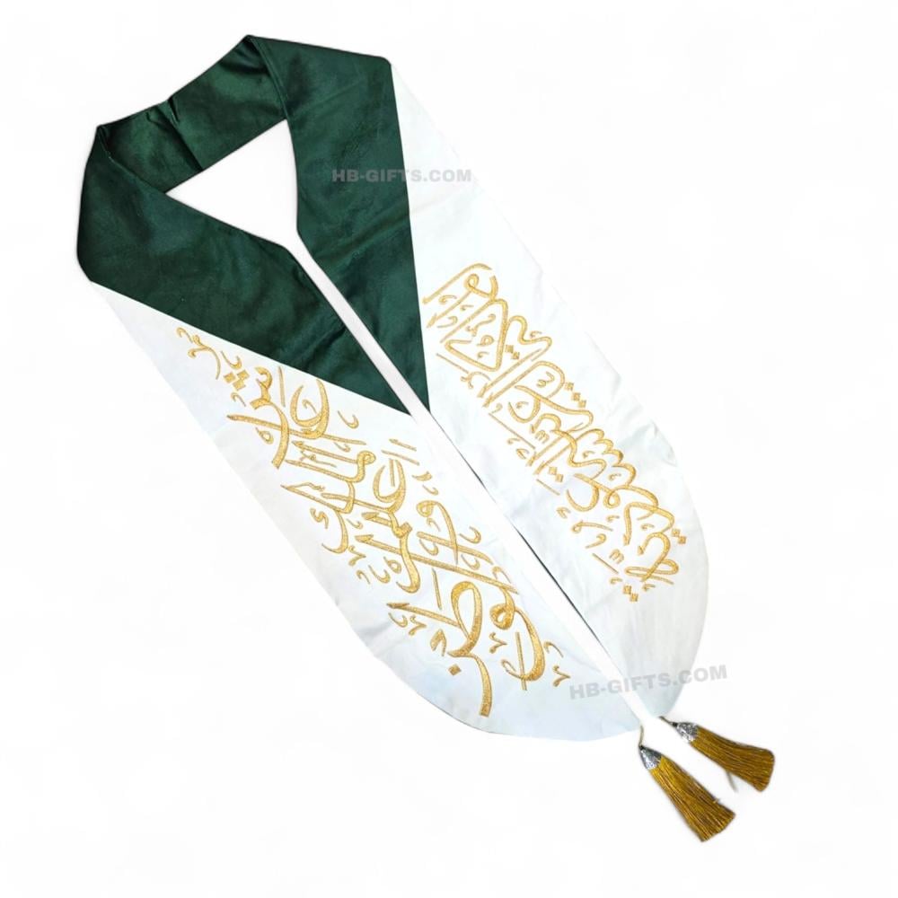 مجموعة (12) من وشاحات قطيفة باللونين الابيض والخضر ومطرزة بخيوط باللون الذهبي-اليوم الوطني السعودي95