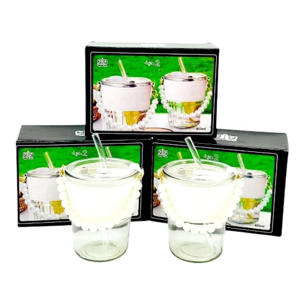 مجموعة انيقة من الاكواب الزجاجية المصممة بغطاء ومعها قشة زجاجية لتضيف لمسة اناقة للكوب ,الاكواب مصممة من الزجاج الشفاف وعليها غطاء وقشة زجاجية لسهولة الاستخدام ,الاكواب مصممة مع سلسة من اللولو لحمل الكوب بسهولة تعد مجموعة الاكواب مثالية للاستخدام سواء في المشروبات الساخنة او الباردة كما انها تستخدم في المنازل او المكاتب .