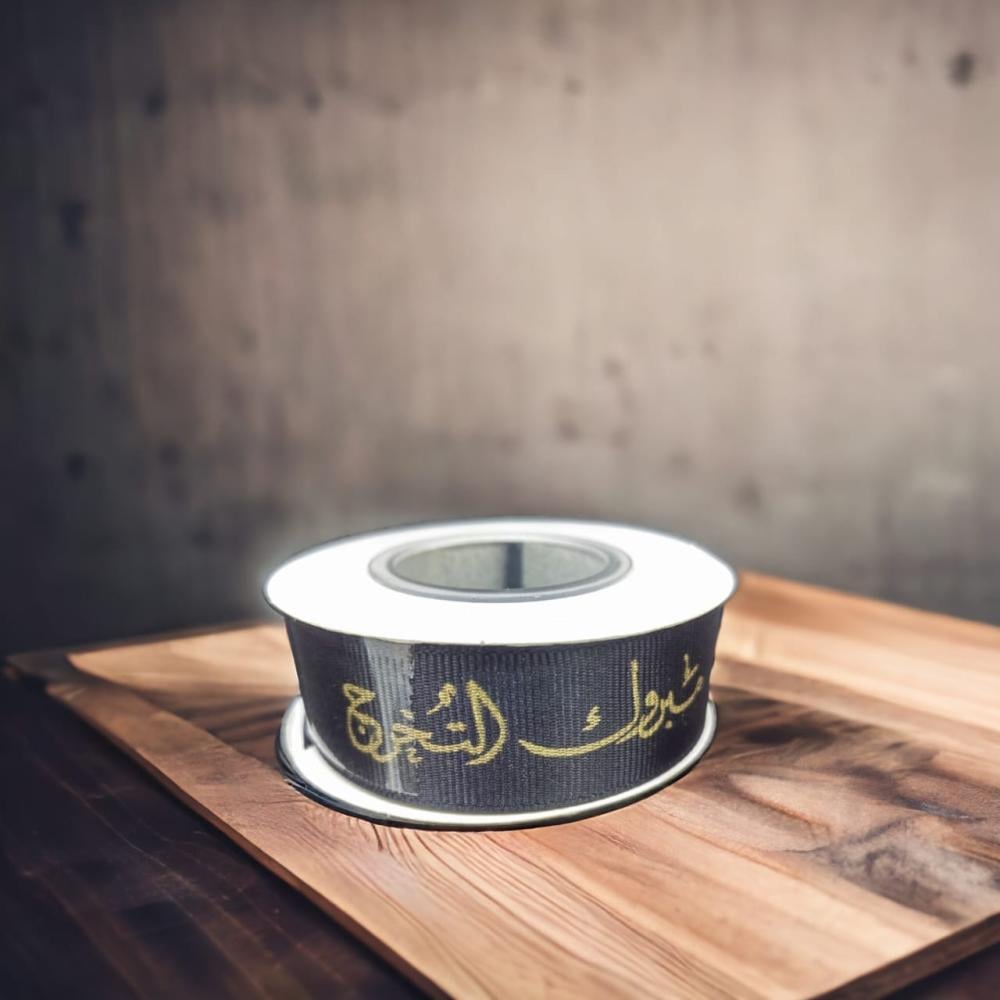 شريطة بيكاء للتخرج لون اسود بعبارة ذهبيه مبروك التخرج (5 متر)