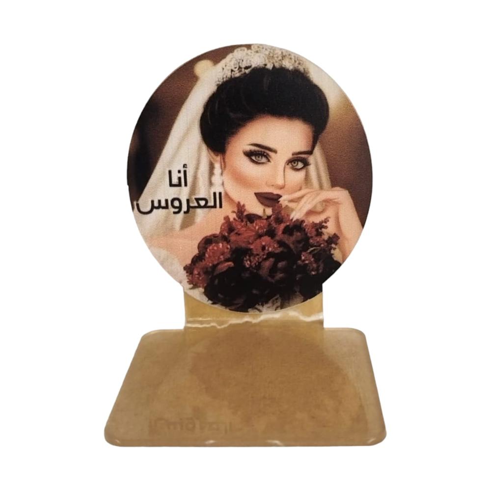 بتقديم توزيعات انيقه من قواعد الاكريليك الشفافه مع ثيم عروسه وعبارة انا العروس وتأتي بدون تعبئه