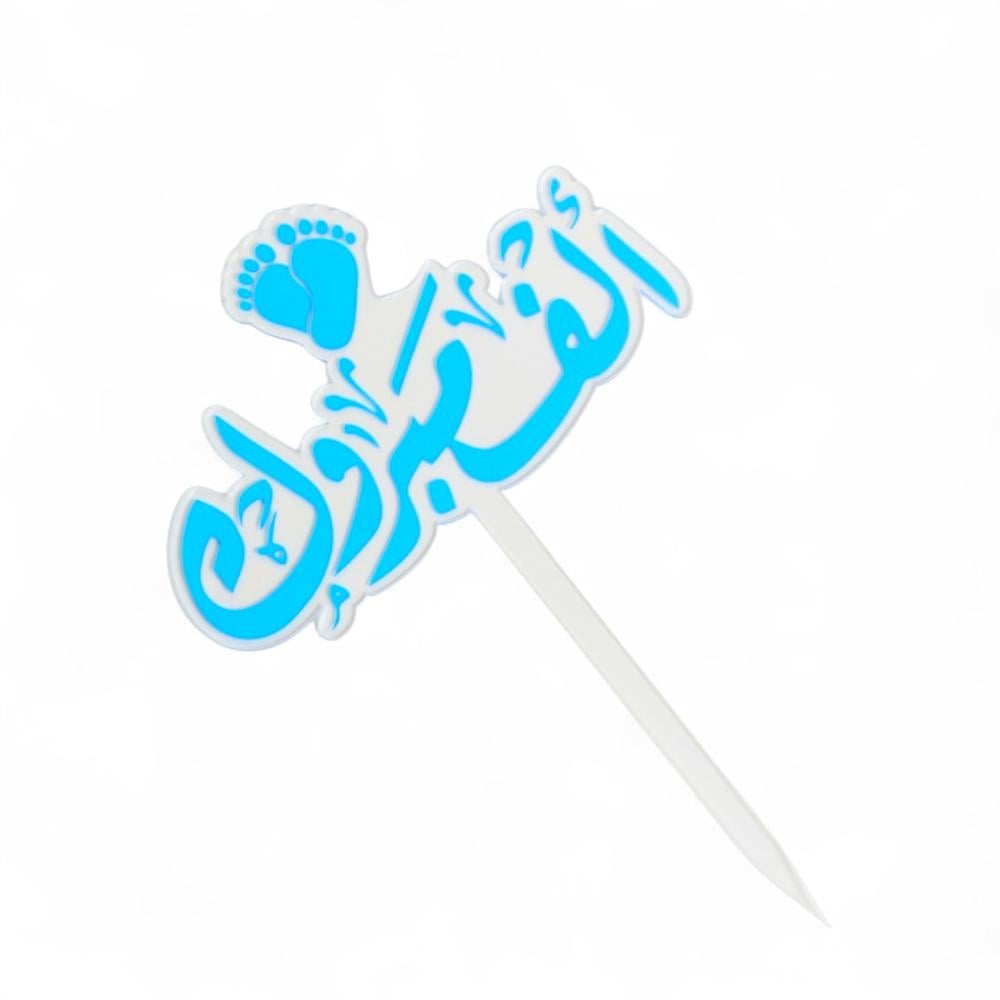 مجموعة مميزة من التغريسات المصممة بعبارة الف مبروك باللون الازرق ,اجعل طاولة الحلا مميزة وانيقة مع هذه التغريسات التي تضيف لمسة راقية للحلا المقدم في حفل استقبال مولودك الجديد ,مجموعة التغريسات مصممة لحفلات استقبال المواليد الذكور .
