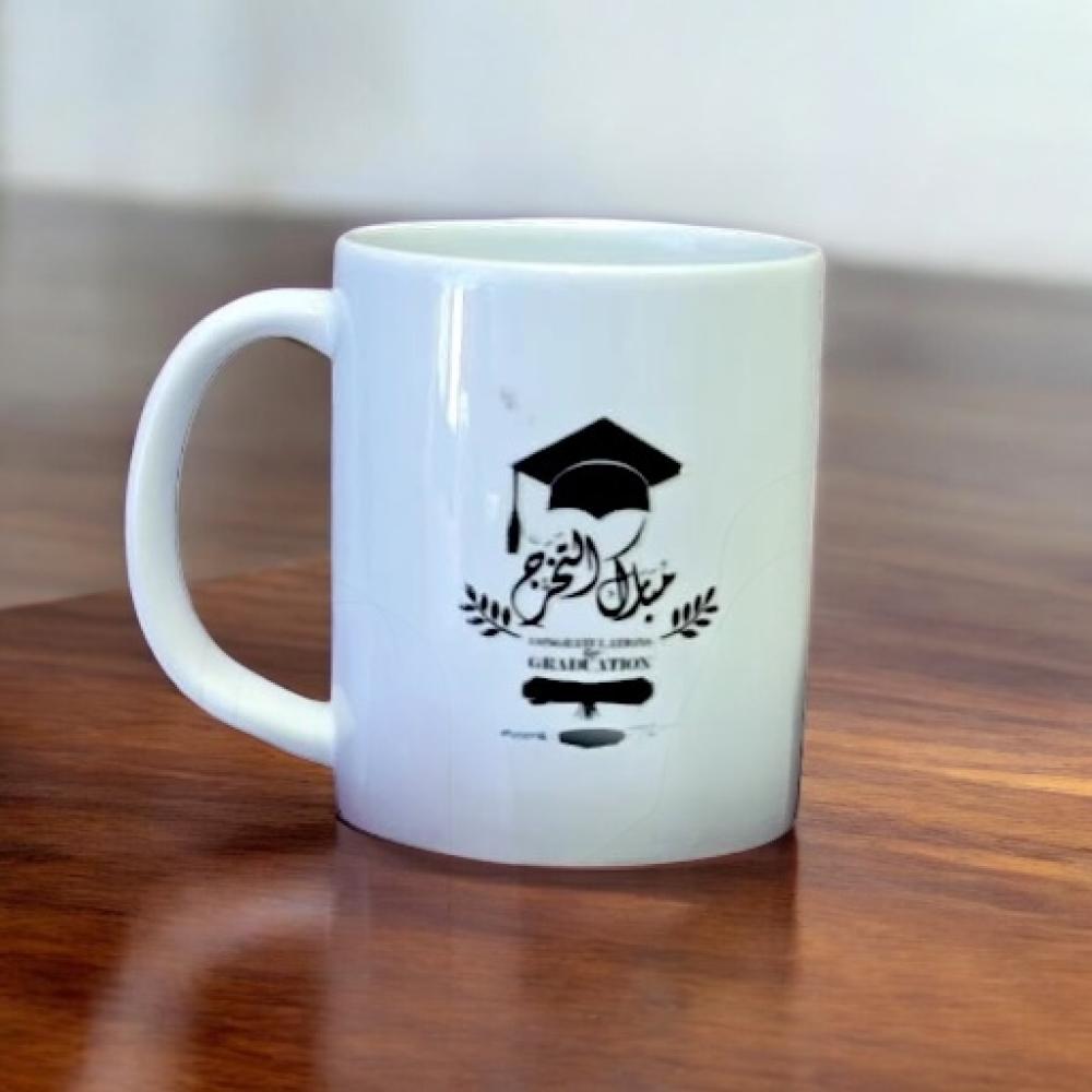 مجموعة (12) توزيعات اكواب انيقة بثيم مبارك التخرج باللون الابيض