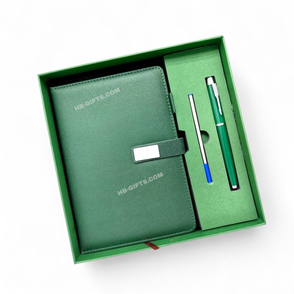 مجموعة (12) من توزيعات مكونة ( قلم ودفتر و غيار للقلم ) باللون الاخضر | اليوم الوطني السعودي 95