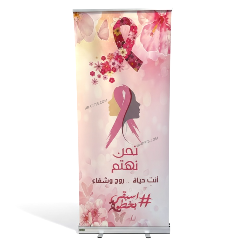 بانر مصمم خصيصا لاحتفالات اليوم العالمي لسرطان الثدي ,البانر مصمم لدعم مرضى سرطان الثدي ولنشر الوعي باهمية الكشف المبكر , البانر يعد جزءا اساسيا من احتفالات اليوم العالمي وهو مصمم مع شعار نحن نهتم .