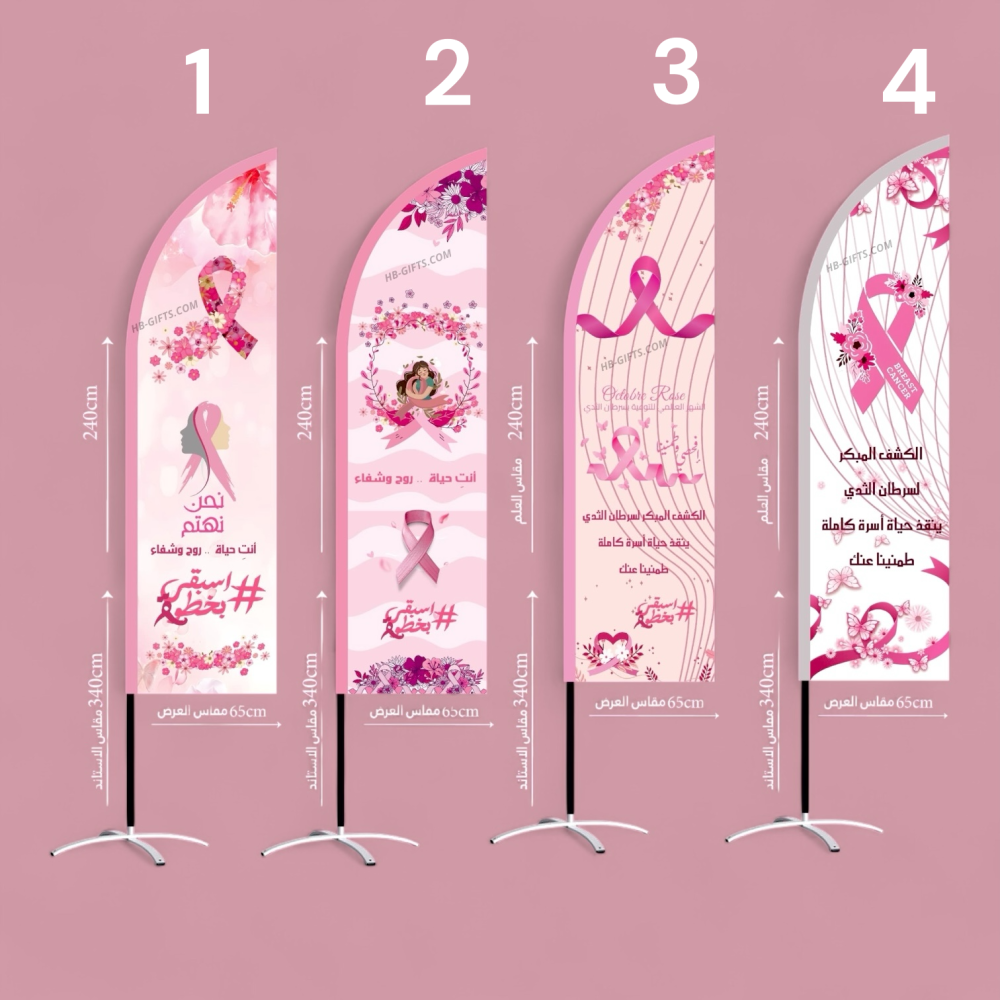 اعلام شراع مصممة مع استاند معدني للتوعية بسرطان الثدي باربع تصاميم مميزة | اليوم العالمي لسرطان الثدي
