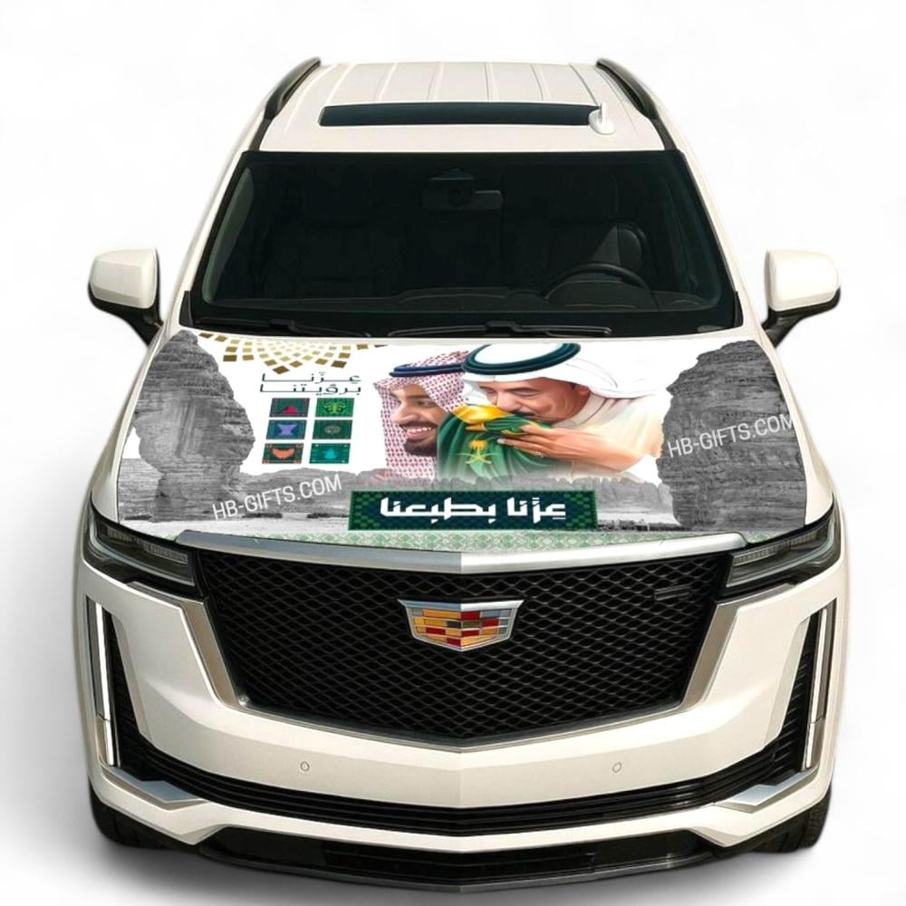 علم كبوت السيارة بصورة الملك وولي العهد وشعار عزنا بطبعنا -اليوم الوطني السعودي 95