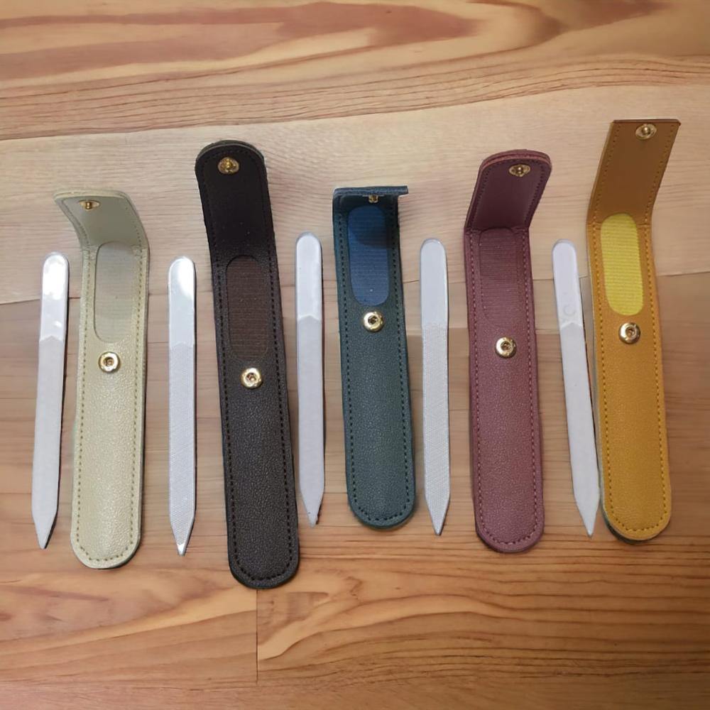 مجموعه 12 من مبرد الأظافر شفاف مع حقيبه جلد
