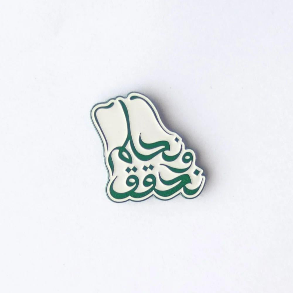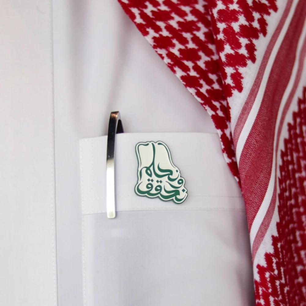 مجموعة 12 بروش اليوم الوطني السعودي 94 - نحلم ونحقق ( أبيض أخضر )
