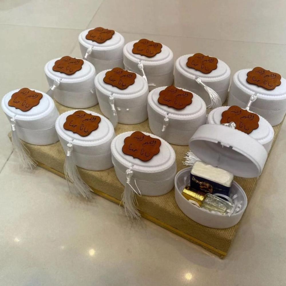 علب توزيعات مع تولة مسك مخفف و مكعب مسك :