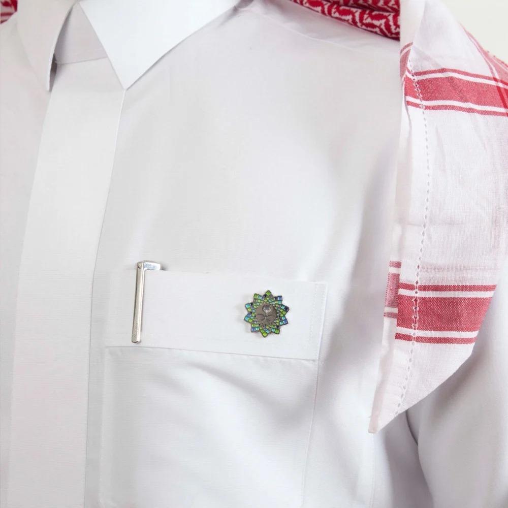 مجموعة 12 بروش سيفين ونخلة اليوم الوطني السعودي - نحلم ونحقق ( فضي )