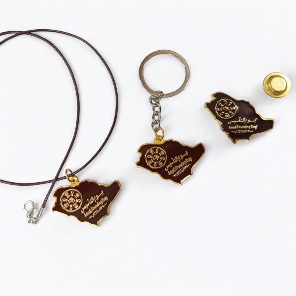 مجموعة (12) اكسسوارات مكونة من سلسلة وميدالية وبروش ليوم التأسيس