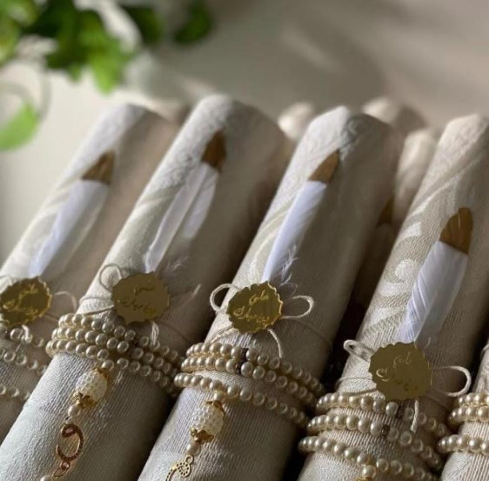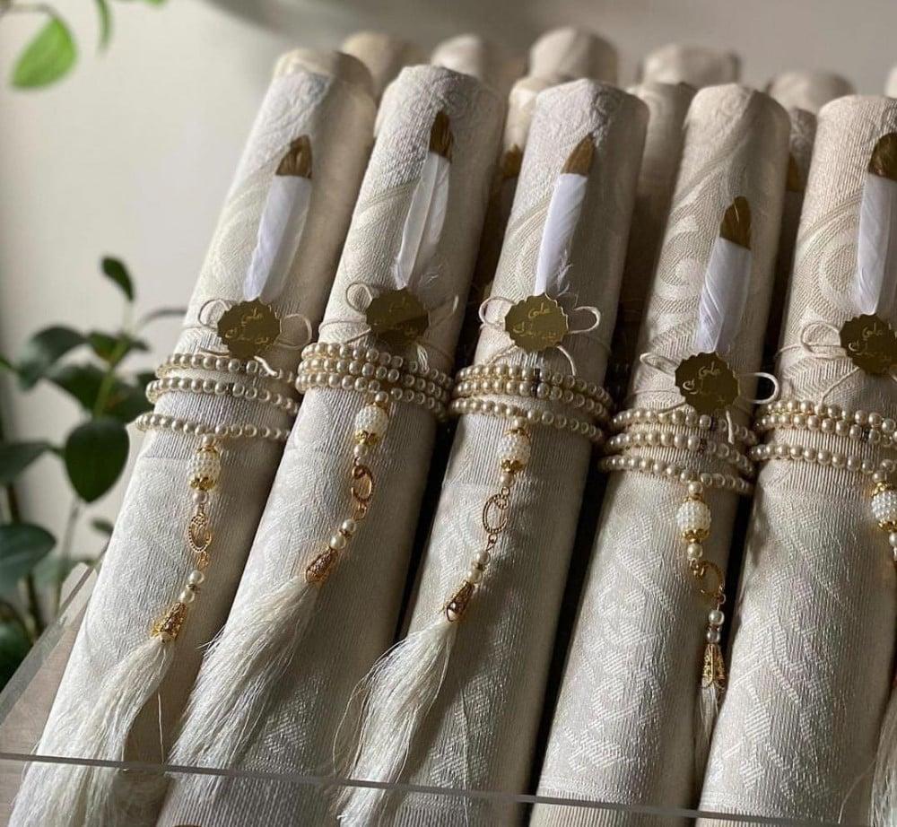سجادة صلاة رول (12) مع التنسيق بالورد والسبحة مع اضافة لوقو حسب الطلب