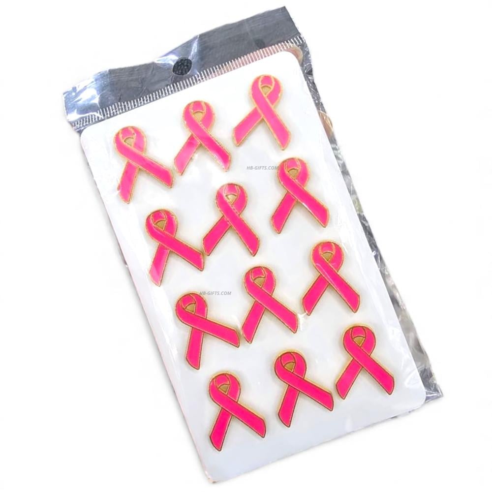 مجموعة (12) من بروشات دبوس للتوعية بسرطان الثدي مصممة بشعار اليوم العالمي لسرطان الثدي