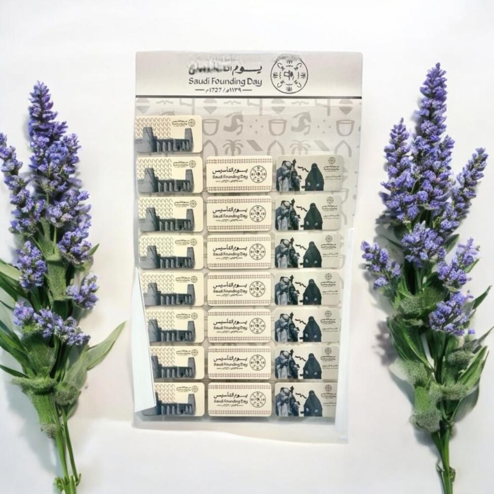 مجموعة من استيكرات المصممة خصيصا للاحتفال بيوم التأسيس مصممة بثلاث اشكال مختلفة وبثيم يوم التأسيس, تعد استيكرات يوم التأسيس جزء هلم في توزيعاتك حيث انها تكمل تنسيق التوزيعات الخاصة باحتفالك , يمكن طلب الاستيكرات عبارة عن مجموعة واحدة من 22 قطعة او 12 مجموعة من 264 قطعة .