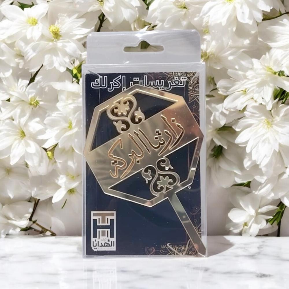 مجموعة (12) من تغريسات كيك ذهبية انيقة بعبارة زارتنا البركة