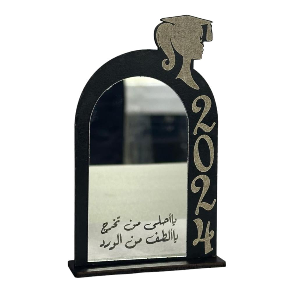توزيعات مرايا استاند بثيم التخرج 2024 وعبارة ياأحلى من تخرج ياألطف من الورد .