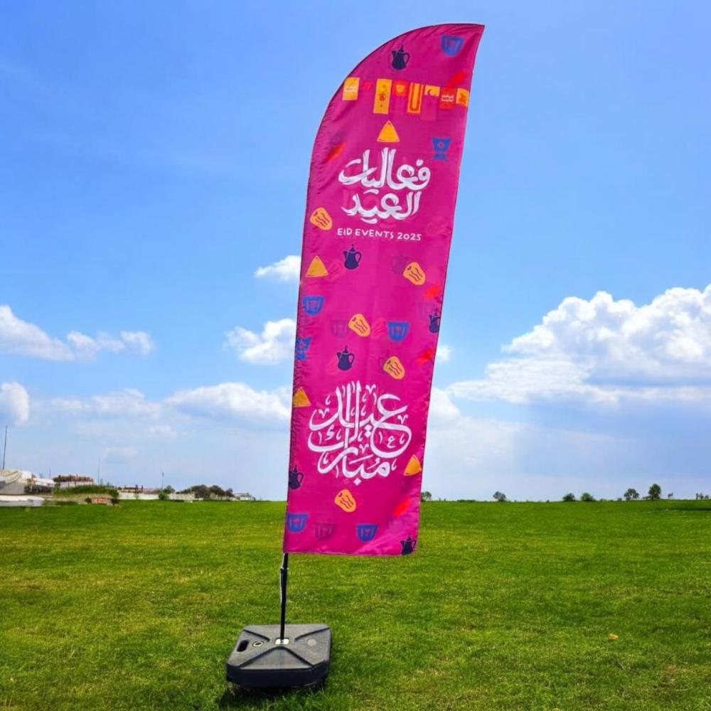 أعلام شراع لتجهيزات الاحتفال بعيد الفطر المبارك . الاعلام مصممة بالوان تتناسب مع فرحة قدوم العيد.وعليها ثيم عيد مبارك .