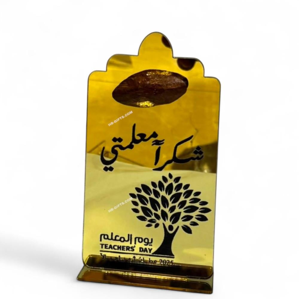 مجموعة قواعد اكليريك مصممة لاحتفالات يوم المعلم , القواعد مصنوعة من الاكليريك باللزن الذهبي ومكتوب عليها شكرا معلمتي ,كما ان القواعد تاتي منسقة مع كسرة عود .