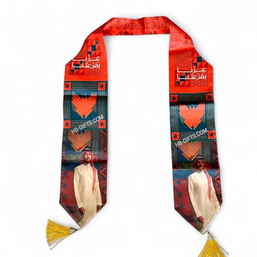 مجموعة (12) من وشاحات ساتان بتصميم مستوحى من التراث السعودي -وشاحات اليوم الوطني السعودي 95