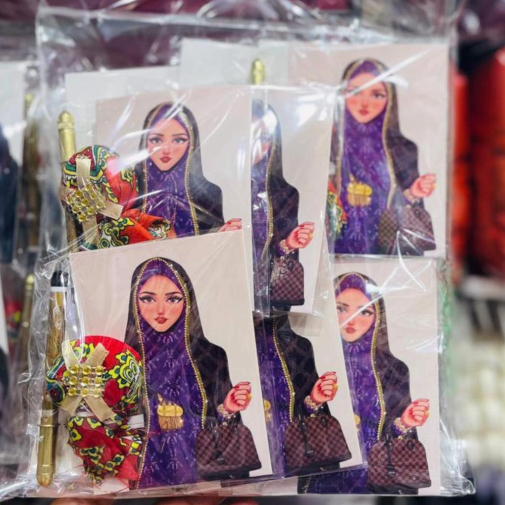 • يتكون داخل المغلف كرت ثيم عروسة و كحل للعين وبقشة حنا .